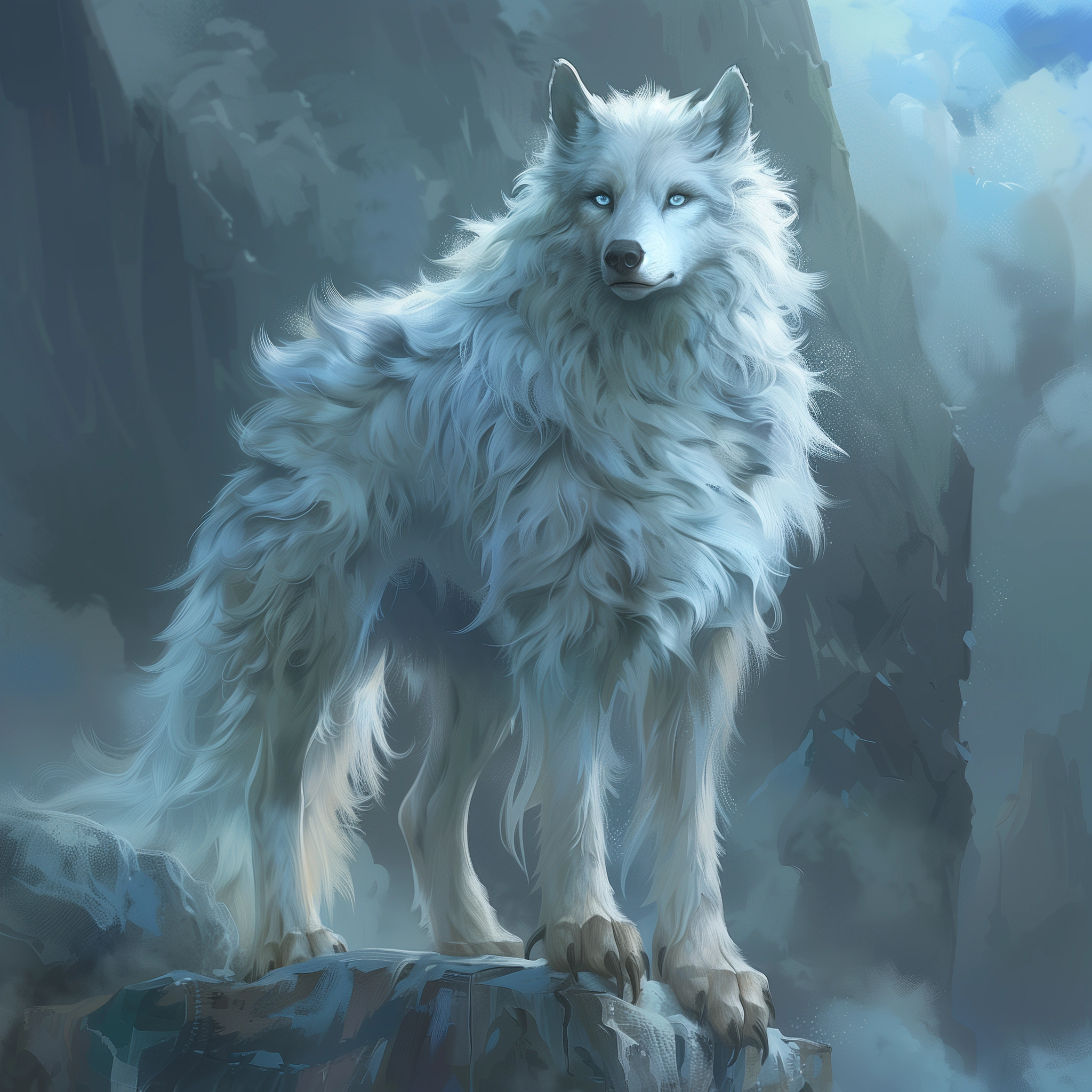 Standing nearly 3 meters tall, the Wampa is a towering figure of strength and primal ferocity. Its body, covered in a thick coat of white fur, blends seamlessly into the snowdrifts and icy formations of its habitat, making it an unseen spectre until it chooses to strike. The muscular arms end in deadly claws, capable of carving through ice and flesh with equal ease. The creature's face, a stark contrast to the softness of its fur, features piercing yellow eyes - windows to a soul driven by survival - and a gaping maw filled with razor-sharp teeth, perfectly evolved for its carnivorous diet.
